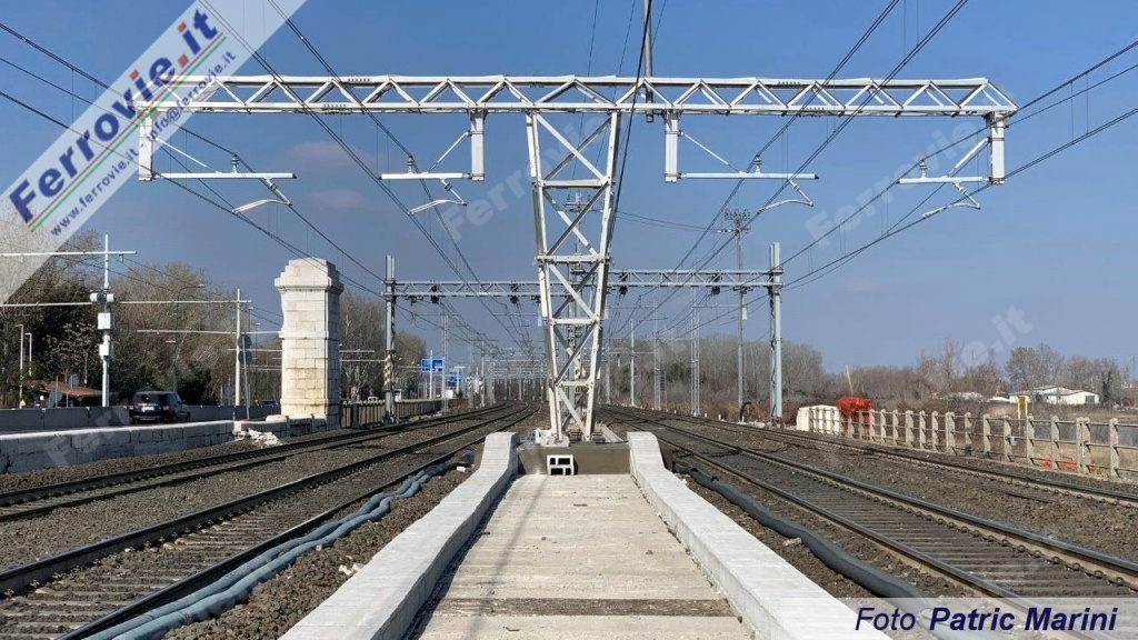 VENEZIA - Si sono conclusi nei primi giorni di marzo i lavori di sostituzione della palificazione e della linea di contatto sui due ponti ferroviari translagunari che uniscono Venezia a Mestre, noti come Ponte della Libertà. L'intervento, eseguito da GCF ed avviato nel giugno 2018 (vedi News ferroviarie del 08/08/2018 e Brevi ferroviarie del 13/12/2018), ha interessato circa 2500 metri di linea con la sostituzione dei vecchi pali tubolari tipo M, in posizione convenzionale esterna ai binari, con 50 nuovi tralicci e travi trasversali posizionati al centro tra i quattro binari, qui più protetti dall'aggressione degli agenti atmosferici della laguna sottostante.