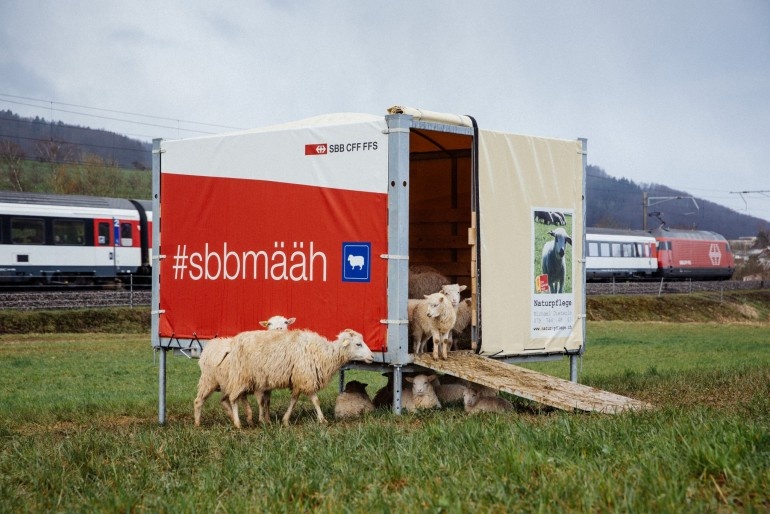 Le FFS si occupano complessivamente della cura di 2700 ettari di scarpate in Svizzera, l'equivalente della superficie di quasi 3800 campi da calcio. Utilizzando le pecore per la manutenzione delle scarpate le FFS promuovono la biodiversità con grande riguardo. I nostri clienti possono così provare la piacevole sensazione di viaggiare non solo in modo sicuro, pulito e puntuale, ma anche sostenibile, e quindi sentirsi sempre «in viaggio come a casa propria» con le FFS.
