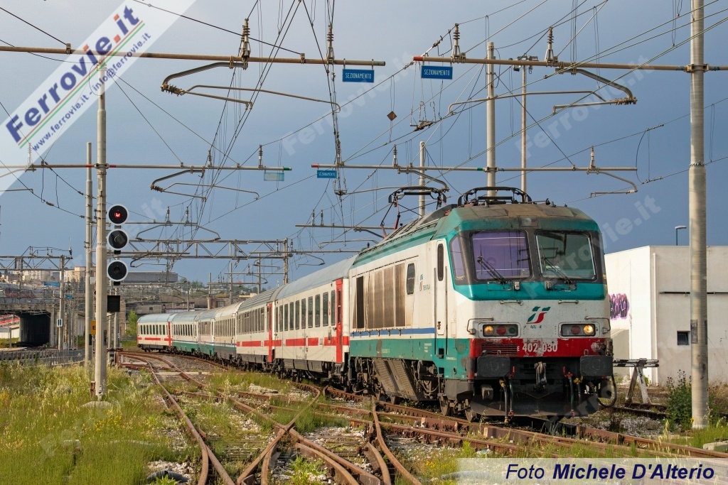 ROMA - Con l'arrivo a Roma Termini dell'Intercity 773 da Trieste, si è conclusa martedì 30 aprile la storia delle locomotive E.402A. Il convoglio è stato infatti trainato dalla E.402.030, ultima unità del gruppo di 40 unità (006 - 045) non ancora trasformata in E.401. Poche ore dopo questo ultimo servizio la E.402.030 è stata inviata a Foligno, dove inizieranno i lavori di riqualificazione con il taglio della cabina per l'inserimento del modulo con intercomunicante e aggiornamento degli azionamenti.