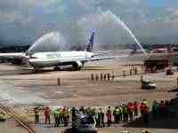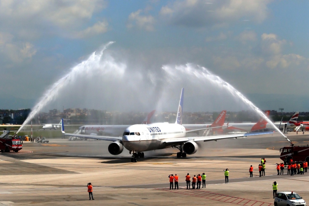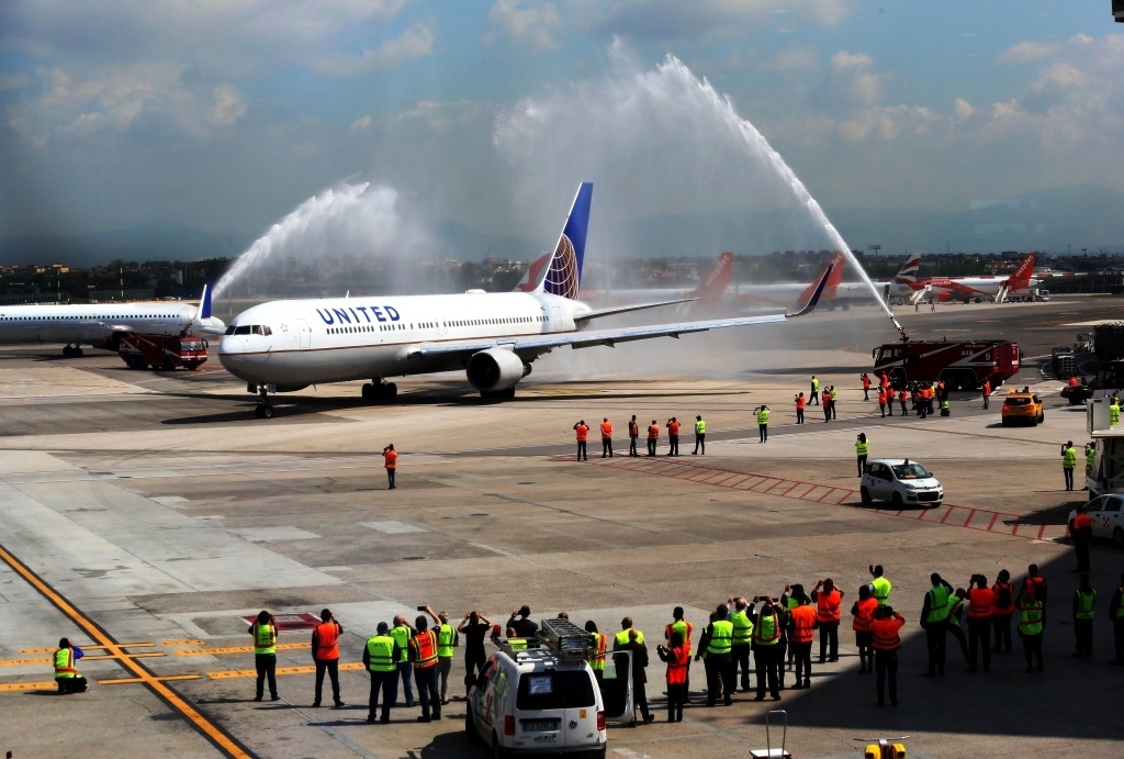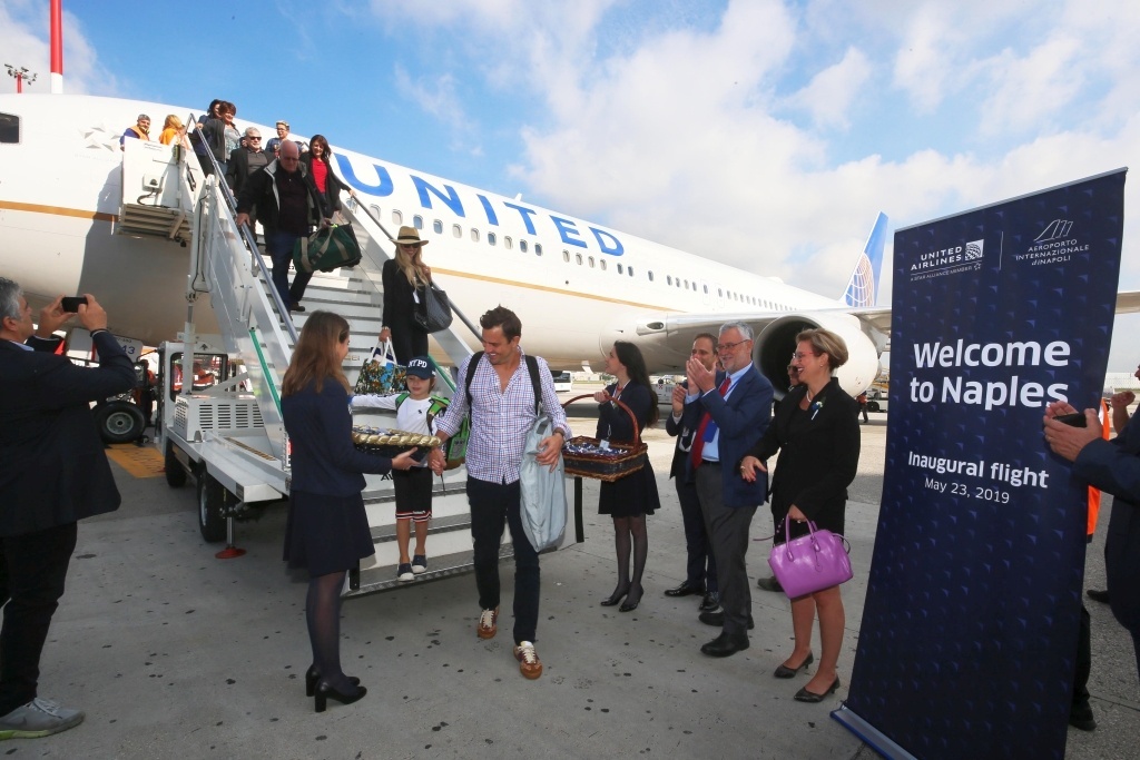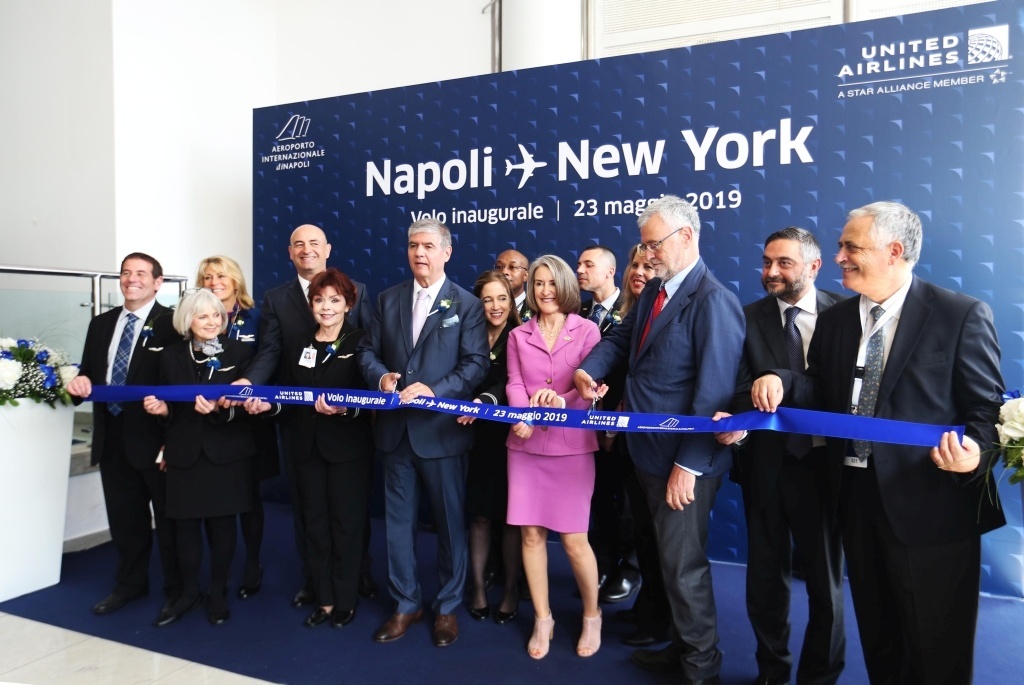 Con l'obiettivo di rimarcare questo straordinario evento, i clienti, gli ospiti, i dipendenti di United e l'equipaggio del volo inaugurale si sono uniti a Marcel Fuchs, Vicepresidente vendite internazionali di United, Walter Cianciusi, Direttore vendite di United per l'Italia, Roberto Barbieri, Amministratore delegato della società di gestione dell'aeroporto di Napoli, Mary Ellen Countryman, Console generale degli Stati Uniti a Napoli, Nino Daniele, Assessore al Turismo e Cultura del Comune di Napoli e Corrado Matera, Assessore al Turismo Regione Campania per una speciale cerimonia di apertura del gate seguita da uno spettacolare saluto con cannoni ad acqua mentre il volo United UA965 diretto a New York/Newark partiva da Napoli.