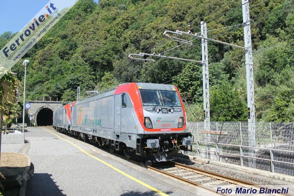 VADO LIGURE (Savona) - Dopo qualche settimana di pausa, sono riprese lunedì 3 giugno le consegne delle nuove locomotive Bombardier E 494 per Mercitalia Rail. Le E 494.012 e 017, subito dopo l'uscita dallo stabilimento, hanno compiuto la classica corsa prova pre-consegna sul percorso Vado Ligure - Genova Sestri Ponente Aeroporto e ritorno, per poi essere consegnate nel pomeriggio all'operatore.