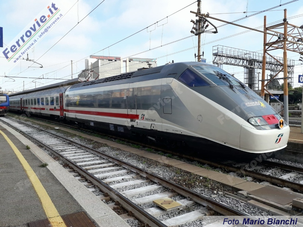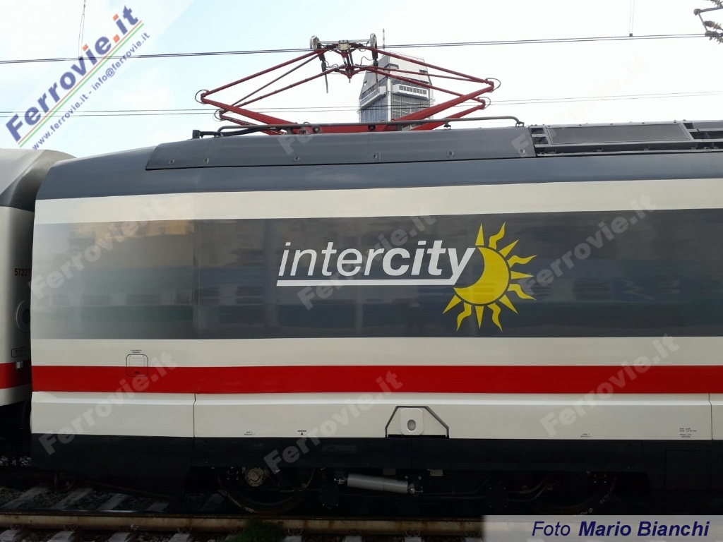 La nuova livrea Intercity è stata già applicata nei mesi scorsi su alcune E.414 (vedi News ferroviarie del 29/09/2018 e News ferroviarie del 09/11/2018) ma solo adesso completata con il logo sul frontale e sulle fiancate.