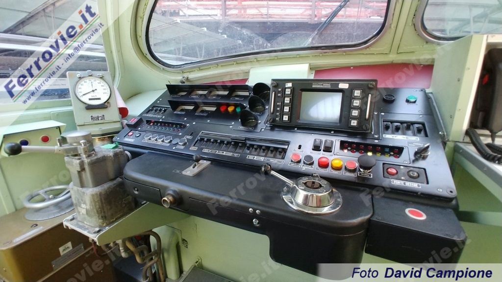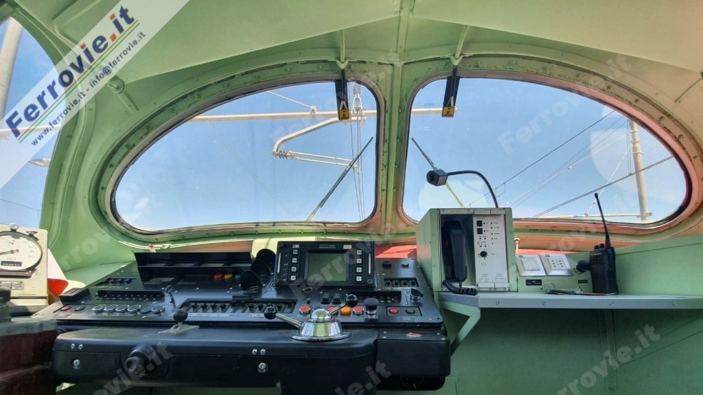 Anche le due cabine di guida che sormontano i belvedere mantengono il loro aspetto d'origine, con il banco di manovra sostanzialmente invariato e i due strapuntini per i macchinisti.