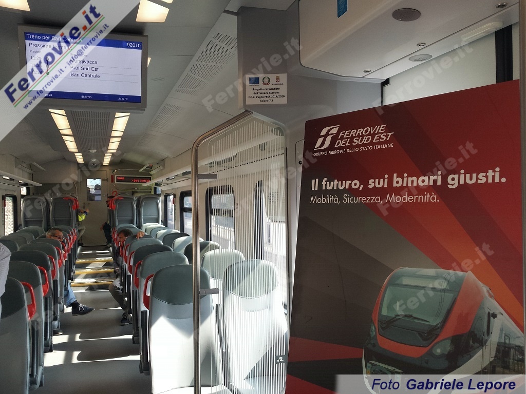 Da lunedì 16 settembre circoleranno due ETR al giorno, ed entro il mese di ottobre tutti i cinque esemplari finora consegnati saranno in esercizio sulla linea 1 bis, per espletare corse da Bari Centrale per Putignano via Casamassima, per Adelfia e viceversa. Gli elettrotreni sostituiranno al 70% la trazione Diesel su questi collegamenti, oggi affidati agli ATR.220 Pesa.