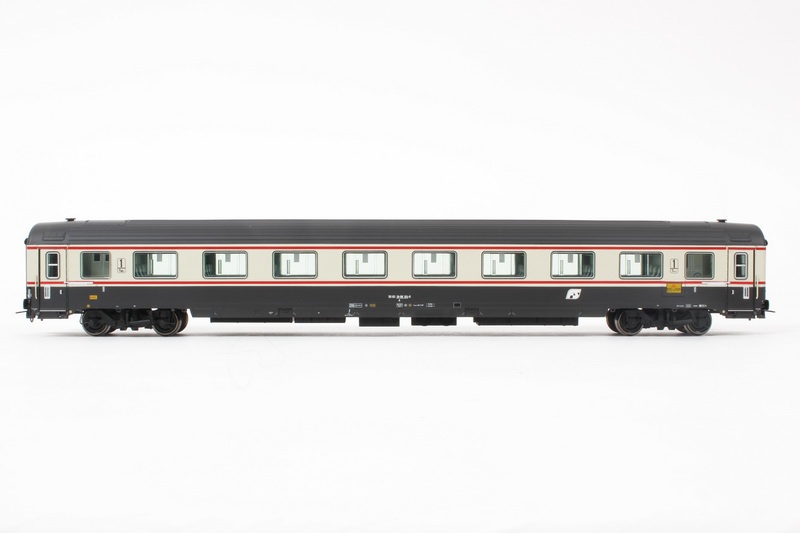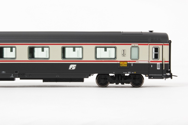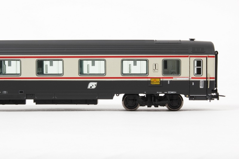 | Note: | Nuovi stampi di alta precisione e qualità, incisioni sottilissime e nette. Carrelli FIAT 7195 C con dettagli di qualità superiore, ruote verniciate e con bordino ribassato. Mancorrenti, predellini ed accoppiatori sulle testate riportati. Interni interamente riprodotti e decorati in più colori, pareti del corridoio con riproduzione dei dettagli. Sottocassa fedelmente riprodotto con numerosi dettagli. Schemi di coloritura e decorazione estremamente realistici e correttamente differenziati in base alle versioni. Gancio corto con cinematismo a norme NEM. Modello con aggiuntivi parzialmente montati e accessori di completamento nella confezione. |