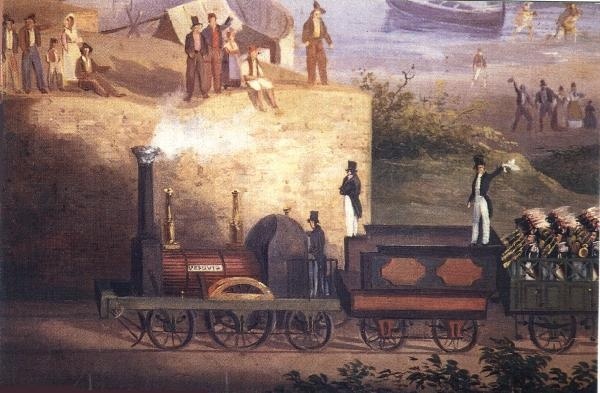 In realtà, come riferito già nell'articolo dedicato alla ferrovia Napoli - Portici (Approfondimenti del 06/11/1999), il primo convoglio fu trainato da una locomotiva ben diversa esteriormente dalla Bayard, che reca chiaramente la denominazione "Vesuvio", come si può notare dal grande dipinto di Salvatore Fergola, artista della scuola di Posillipo, esposto nel Museo di S. Martino in Napoli.