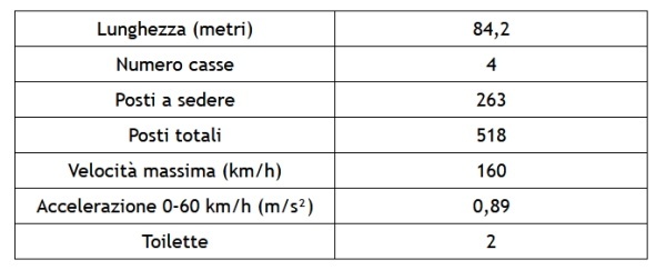 Rispetto alla flotta attuale, è stata stimata una riduzione del 30% dei consumi di energia. Molto elevato inoltre il ricorso a materiali riciclabili (indice di riutilizzo pari al 96%). Da sottolineare anche la riduzione di rumori e vibrazioni, il potenziamento del sistema di climatizzazione e l'ampiezza delle aree di seduta e dei corridoi, adatti alle persone a mobilità ridotta.