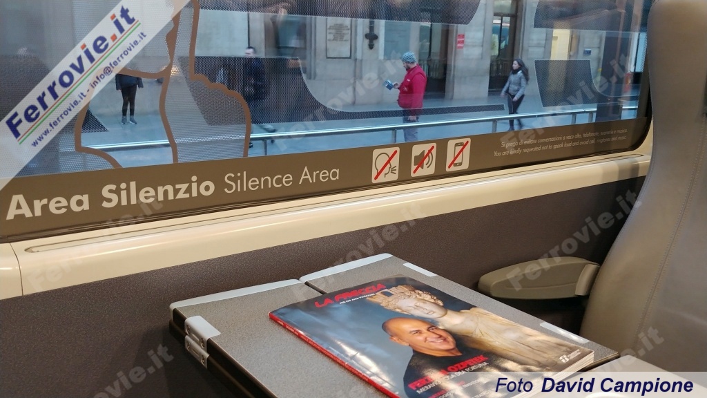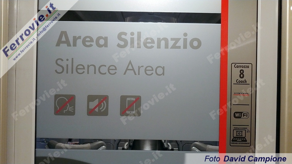 ROMA - Il silenzio diventa Standard. Dopo la Business, la carrozza del silenzio è adesso disponibile anche nel livello Standard dei Frecciarossa di Trenitalia. Da alcuni mesi è in corso l'attrezzaggio delle carrozze 8 degli ETR.400 e 11 degli ETR.500, rispettivamente Frecciarossa 1000 e Frecciarossa, con l'applicazione di vistosi adesivi sui finestrini lato interno e sulle pareti di estremità nonché mediante la copertura dei poggiatesta con foderine che ricordano ai passeggeri che ci si trova nella carrozza del silenzio.