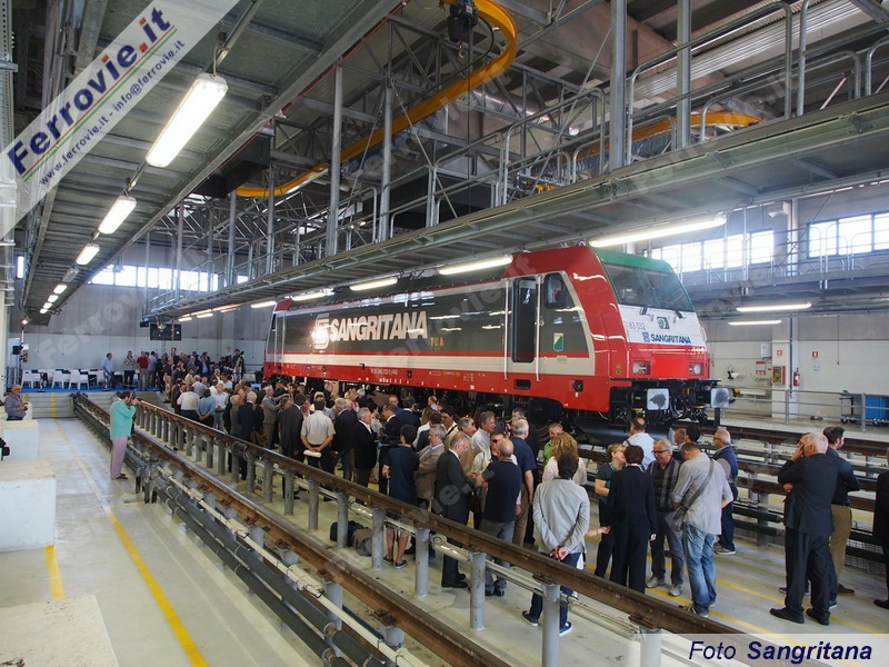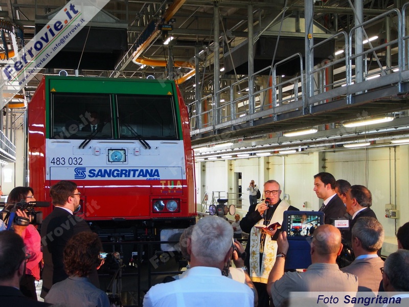 LANCIANO (Chieti) - Cresce la flotta di locomotive elettriche TRAXX della Sangritana. Sabato 6 giugno, con una cerimonia presso il deposito-officina di Lanciano, è stata ufficialmente consegnata dal costruttore la E 483.032, terza macchina del gruppo acquistata dalla Sangritana senza alcun contributo pubblico.