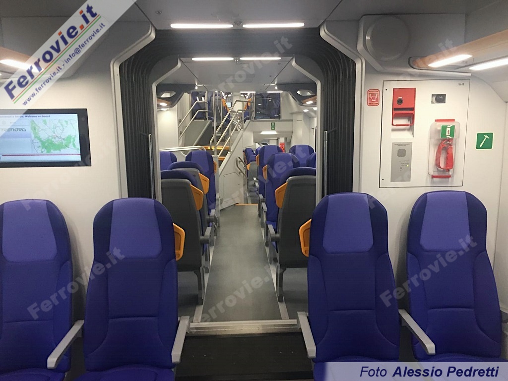 Convoglio a doppio piano ad alta capacità - 629 i posti a sedere complessivi per la composizione a cinque carrozze - Caravaggio è strutturato in un ambiente unico, senza porte né settori divisori, e si caratterizza per finestrini molto ampi. Completamente accessibile, il treno è dotato di sistemi di illuminazione e di climatizzazione, di informazione e videosorveglianza di ultima generazione. A disposizione dei passeggeri sono prese elettriche e USB per la ricarica dei dispositivi mobili, Wi-Fi, aree polifunzionali per il deposito di passeggini e biciclette con possibilità di ricarica per le bici elettriche.