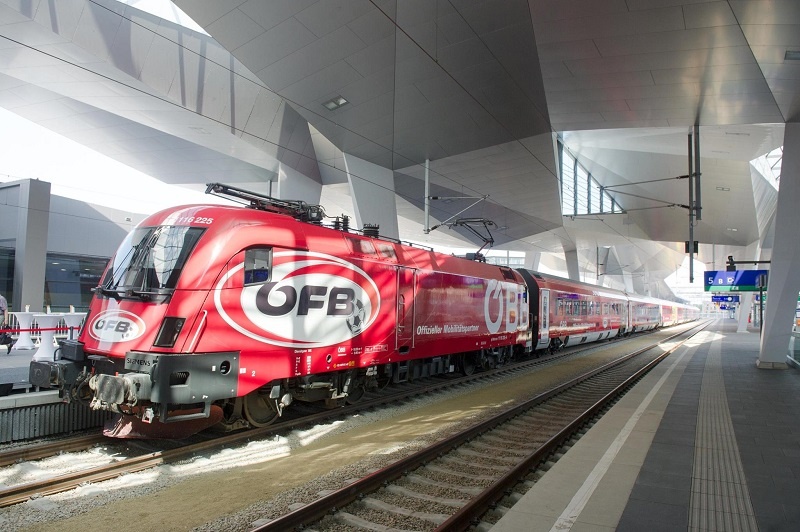 VIENNA (Austria) - La nazionale di calcio austriaca ha un treno con una livrea a lei dedicata. Lunedì 8 giugno ha esordito sui binari austriaci il Railjet delle ÖBB - Österreichische Bundesbahnen con "indosso" i colori della nazionale. 7 carrozze più la Taurus 1116.225, per 206 metri di lunghezza complessivi e 1600 metri quadri di pellicola colorata, con 500 ore di lavoro hanno ricevuto con una sgargiante e inedita livrea che riprende i colori della maglia della nazionale di calcio austriaca, a suggellare la collaborazione tra ÖBB e ÖFB - Österreichischer Fußball-Bund (Federazione calcistica dell'Austria).