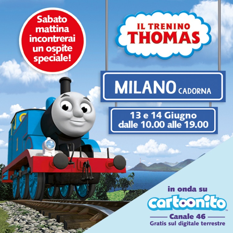 Sabato 13 e Domenica 14 Giugno la stazione di Milano Cadorna sarà teatro dell'arrivo di un treno molto speciale... Destinazione binario 10 per il Trenino Thomas, la locomotiva blu più amata dai bambini! Per tutto il weekend, dalle ore 10 alle 19, la riproduzione di un vero treno interamente brandizzato Trenino Thomas sarà a disposizione di tutti i piccoli fan delle avventure su rotaie. All'interno della struttura i bambini saranno catapultati nel mondo di Thomas e i suoi amici. Tre differenti aree divise per carrozza ospiteranno attività e giochi per tutti i piccoli fan del brand: la carrozza Cinema proietterà su schermi gli episodi della serie che va in onda tutti i giorni su Cartoonito, la carrozza Ludica accoglierà i bimbi con tantissimi trenini e piste della linea toys per creare nuove divertenti avventure ed infine la terza carrozza sarà dedicata a laboratori didattici, le hostess a disposizione seguiranno i bambini in tutte le attività.