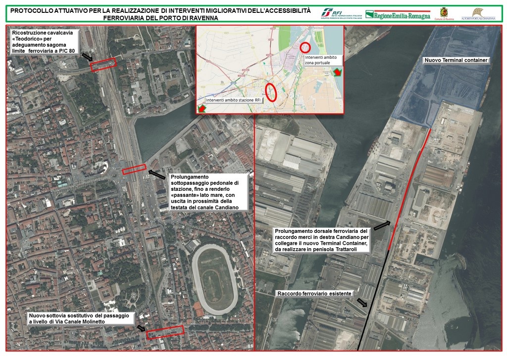 Gli interventi infrastrutturali per l'accessibilità ferroviaria al porto di Ravenna prevedono:
