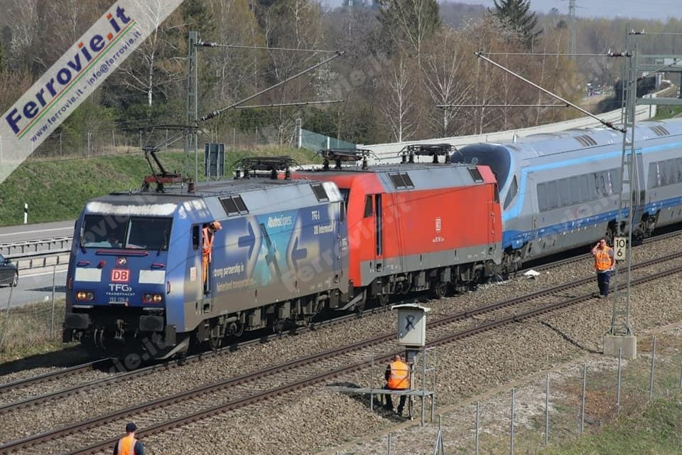 OLCHING (Germania) - Ancora un incidente ferroviario in Germania, nel pomeriggio dell'8 aprile, per fortuna senza vittime né feriti. Coinvolte due locomotive elettriche DB gruppo 152 e un elettrotreno ED250 delle ferrovie polacche PKP (anche chiamato "Pendolino", seppur privo di assetto variabile), in prova da Monaco di Baviera verso Olching, che era trainato con aggancio mediante la cosiddetta "maschera" impiegata per l'accoppiamento tra gancio tradizionale e gancio automatico.