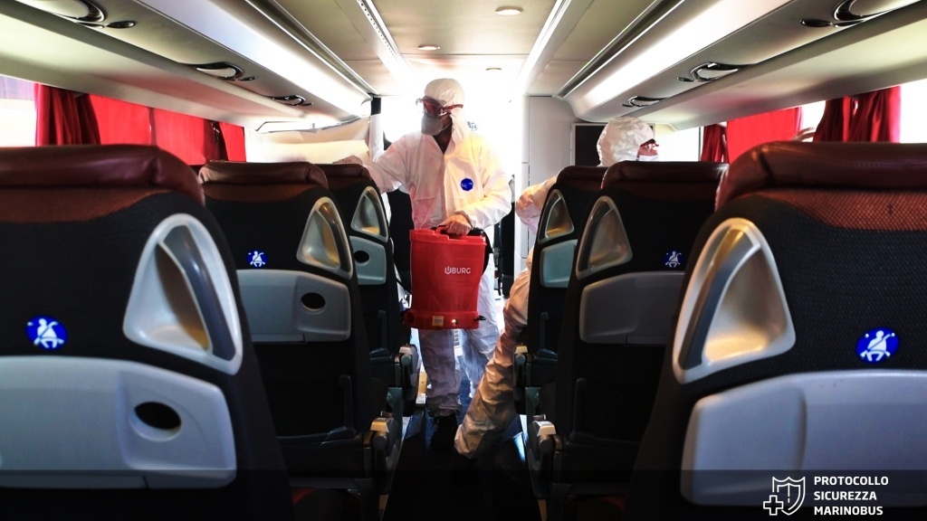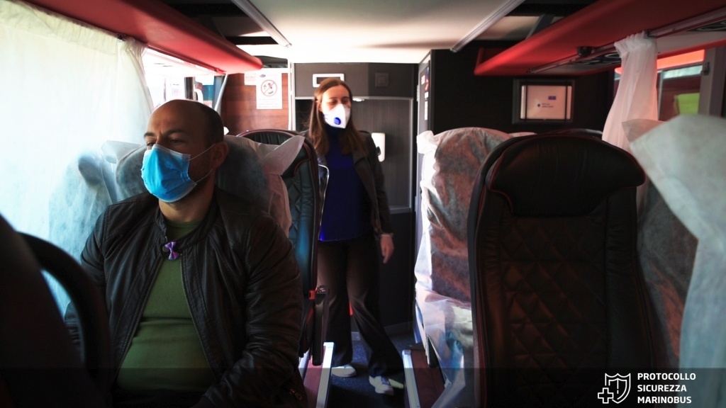 A bordo, infatti, le sedute saranno alternate in modo da garantire - anche durante il tragitto - la distanza di almeno un metro tra i passeggeri e l'assegnazione dei posti dovrà essere rigorosamente rispettata: non solo per il dovere etico di contribuire alla sicurezza di tutti, ma anche per conformità alle regole sul trasporto in caso dei previsti controlli a bordo da parte delle autorità competenti. Peraltro, le particolari caratteristiche di comfort dei mezzi MarinoBus - pullman a due piani con poltrone XXL e ampio spazio per le gambe tra una fila e l'altra - renderanno "naturalmente" più agevole il mantenimento delle distanze di sicurezza rispetto alla maggioranza degli operatori di settore.