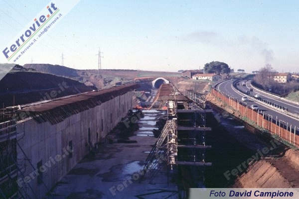 1. Proseguono i lavori sul versante romano della linea ad alta velocità, seppur rallentati da alcuni ritrovamenti archeologici. Questa immagine, ripresa presso Lunghezza, mostra i lavori di copertura di una galleria artificiale. Sullo sfondo è riconoscibile un'altra galleria dello stesso tipo, pressochè ultimata. (Foto David Campione, 3 gennaio 2000)