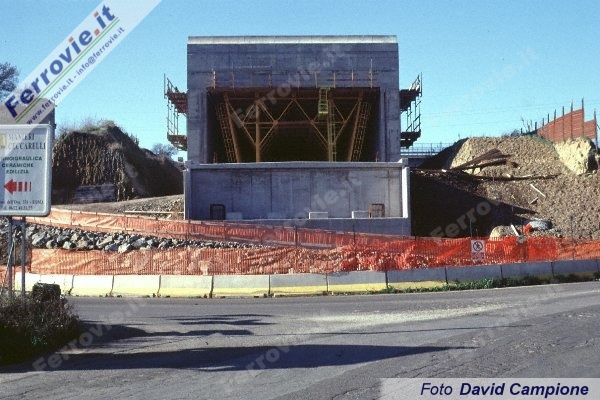 2. Immagine di una galleria artificiale, che si interrompe bruscamente nei pressi di Lunghezza. Per il proseguimento della linea da questo punto si renderà necessario lo spostamento di via di Lunghezzina (in primo piano nella foto) e la costruzione di un viadotto. (Foto David Campione, 3 gennaio 2000)