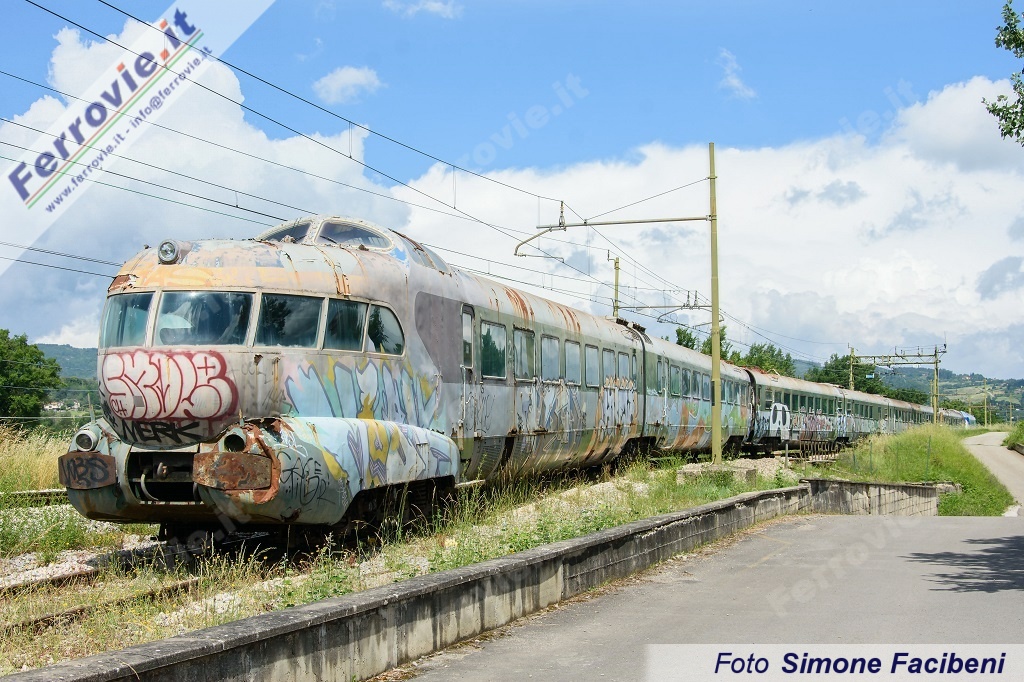 Il treno, trainato da una locomotiva E.656 della Fondazione FS Italiane, ha lasciato l'Officina Trenitalia di Voghera, dove era accantonato da anni (vedi Treni storici del 04/06/2020), per essere trasferito a Roma e da lì ad Arezzo e poi a Porrena, nello stabilimento OMS dove l'ETR sarà riportato ai fasti originali.