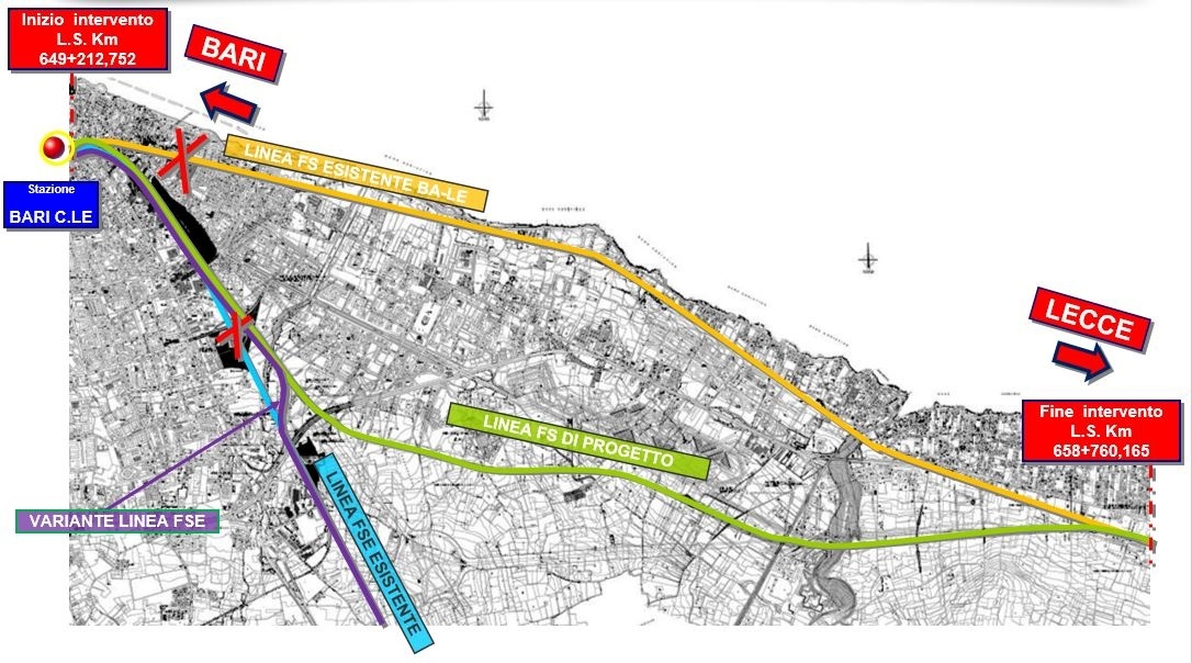 Rete Ferroviaria Italiana (Gruppo FS Italiane) ha consegnato l'appalto per la progettazione esecutiva e successiva realizzazione della variante ferroviaria a sud di Bari (vedi anche Brevi ferroviarie del 02/04/2020).