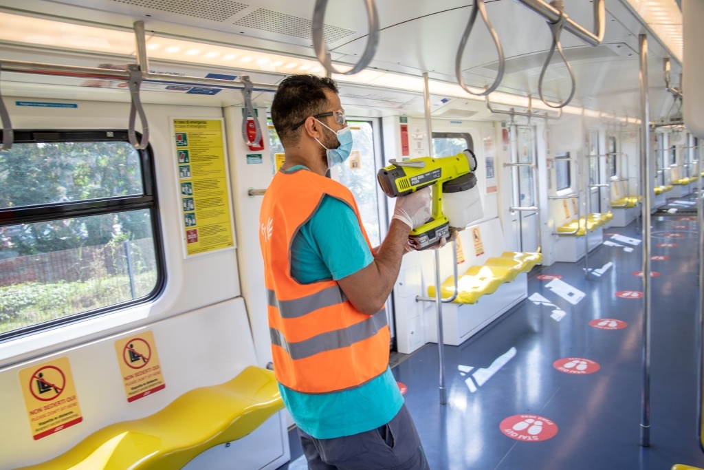Nuovi interventi si aggiungono al piano straordinario che ATM ha messo in atto fin dall'inizio dell'emergenza, che già prevede una sanificazione quotidiana di tutte le superfici di contatto su treni, bus, tram e filobus, di tutte le stazioni e le banchine, utilizzando prodotti a base di candeggina/cloro, solventi, etanolo, acido paracetico e cloroformio. Queste azioni vengono rafforzate con attività di igienizzazione dei mezzi anche durante il giorno, ai capolinea delle linee di superficie più frequentate e ai capolinea delle metropolitane, grazie a un sistema con atomizzatore che vaporizza una sostanza disinfettante su tutti le superfici di contatto. Oggi, tra attività notturne e diurne, sono impiegate 400 persone per sanificare i 1.600 mezzi e tutte le 113 stazioni della rete metropolitana.