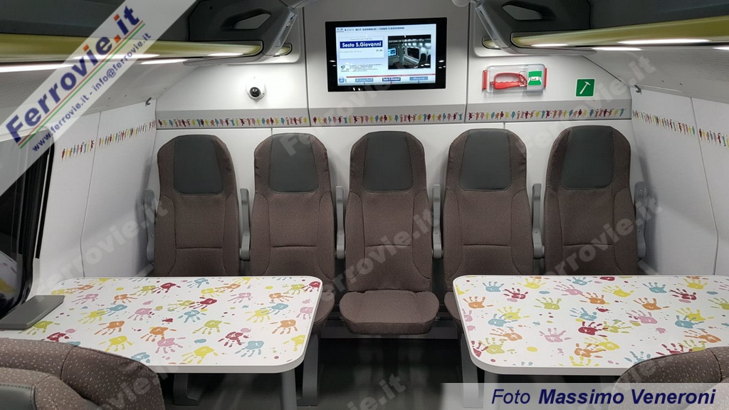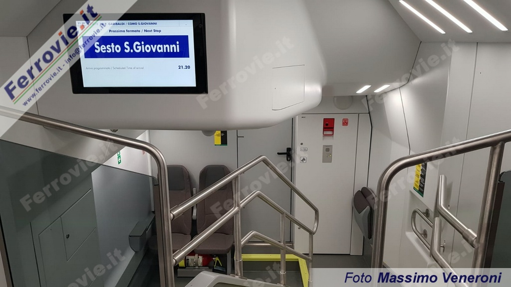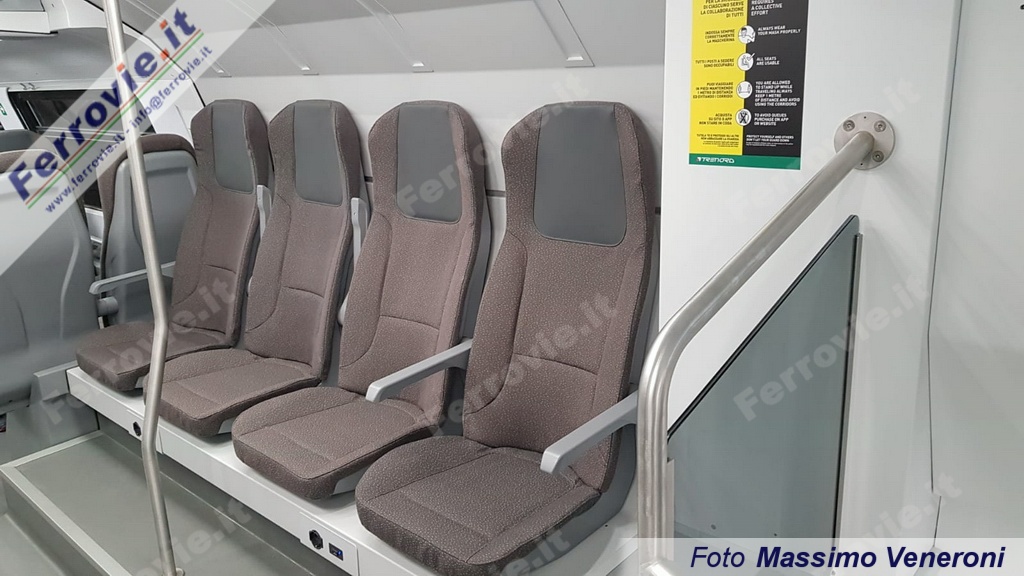 Sui display esterni full color, al momento, compare solo la destinazione, auspicando che si riesca a programmare dal sistema OBoE l'indicazione della relazione "S" o "R" di riferimento. A bordo sono presenti 466 posti a sedere, tavolini con cestino, prese da 220 V, porte USB per la ricarica di dispositivi mobili, spazio bici/carrozzine e il compartimento famiglia al piano superiore. I sedili sono in stoffa antibatterica e antiacaro, con imbottitura soffice e resistente. Presenti oltre 60 telecamere e monitor LCD per annunci video e audio relativi alle informazioni di viaggio. I convogli sono predisposti per l'impianto Wi-Fi, che però al momento non è presente a bordo.