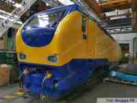 FOLIGNO (Perugia) - Volgono al termine i lavori di revisione della E.402.142 di RFI nelle Officine Grandi Riparazioni di Foligno. In occasione della manutenzione, la macchina sta ricevendo la nuova livrea gialla e blu che identificherà tutti i mezzi diagnostici di Rete Ferroviaria Italiana.