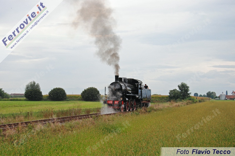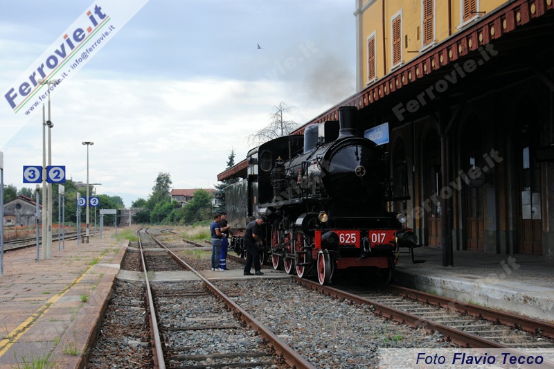 MORETTA (Cuneo) - Martedì 1° settembre è uscita dallo stabilimento della Metalmeccanica Moretta la locomotiva a vapore 625.017 del deposito di Roma Smistamento. Sottoposta a sostituzione dei tubi della caldaia ed altre riparazioni presso la piccola azienda cuneese (vedi Treni storici del 22/03/2014), la 625 si è trasferita con i propri mezzi da Moretta a Saluzzo attraverso la linea ferroviaria Airasca-Saluzzo, oggi chiusa al traffico regolare ed utilizzabile in regime di raccordo solo fra Moretta e Saluzzo.