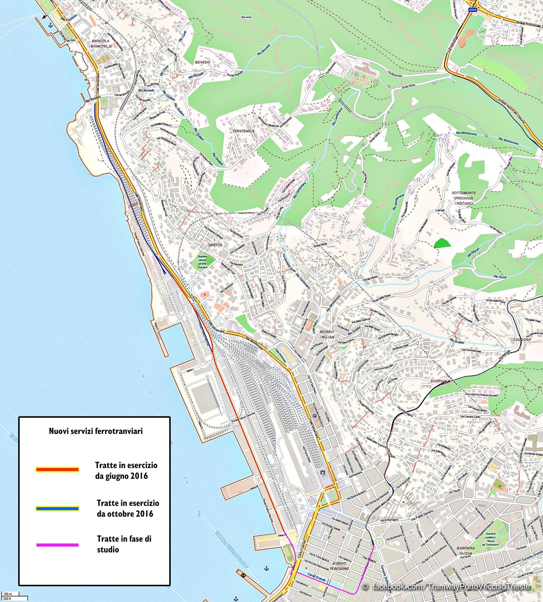 Nei progetti del comune di Trieste è previsto un servizio regolare su ferro per finalità turistiche dal centro del capoluogo giuliano al Polo culturale (Centrale Idrodinamica e Magazzino 26) per circa 1200 metri ed a seguire per il prossimo ottobre l'attivazione di ulteriori 1800 metri da qui a Barcola, il tutto sui binari del Porto Vecchio non più raccordati alla Rete Ferroviaria Italiana.