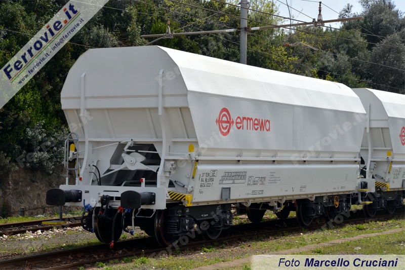 Specializzati per il trasporto di minerali con carico massimo pari a 69,6 tonnellate, i nuovi carri di Ermewa contemplano il carico dall'alto e lo scarico per gravità attraverso portelloni laterali, con funzionamento pneumatico alimentato dall'apposita condotta blu in testata da collegarsi alla locomotiva. Possono viaggiare alla velocità massima di 100 km/h e dispongono del nuovo sistema di frenatura CFCB - Compact Freight Car Brake della tedesca Knorr-Bremse specializzato per carrelli Y25, che varia automaticamente l'intesità di intervento in funzione del carico.